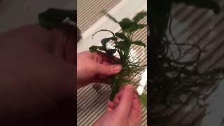 - Потом растение подхватывают и извлекают из аквариума. Если анубиас плотно укоренился, можно слегка подрезать корни.